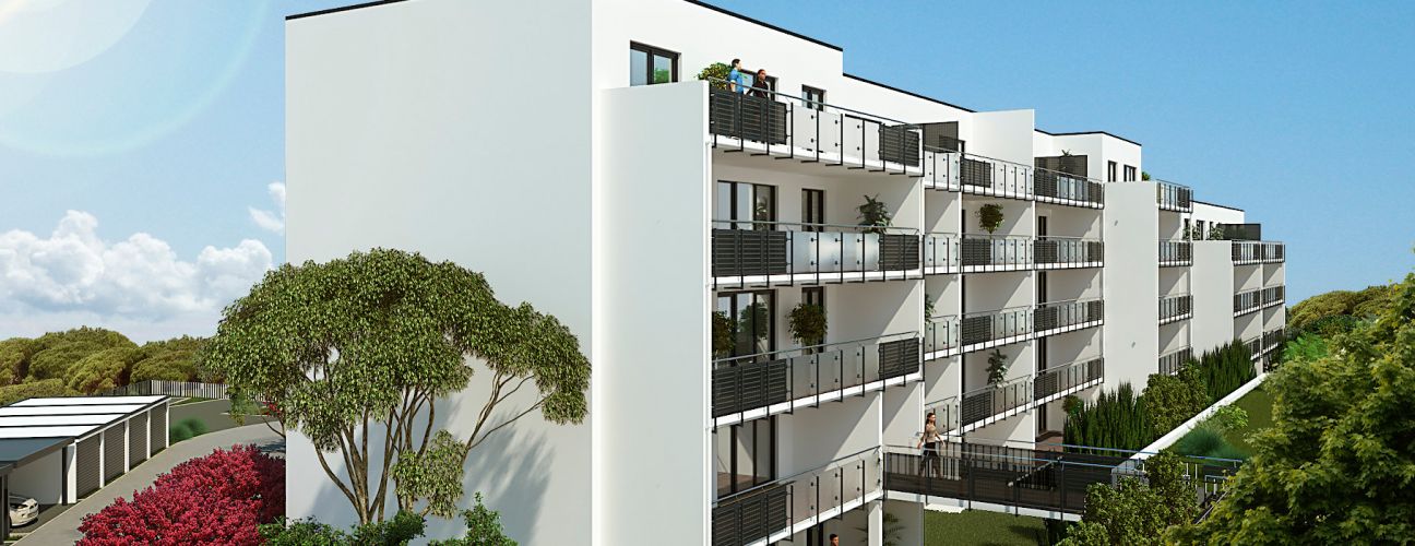 In dieser ruhigen Wohnanlage bieten wir sehr schöne und aufwendig ausgestattete Wohnungen an. In den Größen von ca. 65 qm für 2ZKBB, ca. 86 qm für 3ZKBB und ca. 94 qm für 4ZKBB zuzüglich je einer großzügigen Loggia, erwerben Sie modernes Wohnen auf hohem Niveau. Zu jeder Wohnung ist eine Garage und/oder ein Stellplatz zu erwerben. Wir planen für die Zukunft! Die Garagen und Stellplätze verfügen über Vorrichtungen für Elektroanschlüsse, um z.B. Ihr E-Bike oder Ihr Elektroauto aufzuladen. Natürlich sind auch überdachte Abstellplätze für Fahrrad und Co. vorhanden.